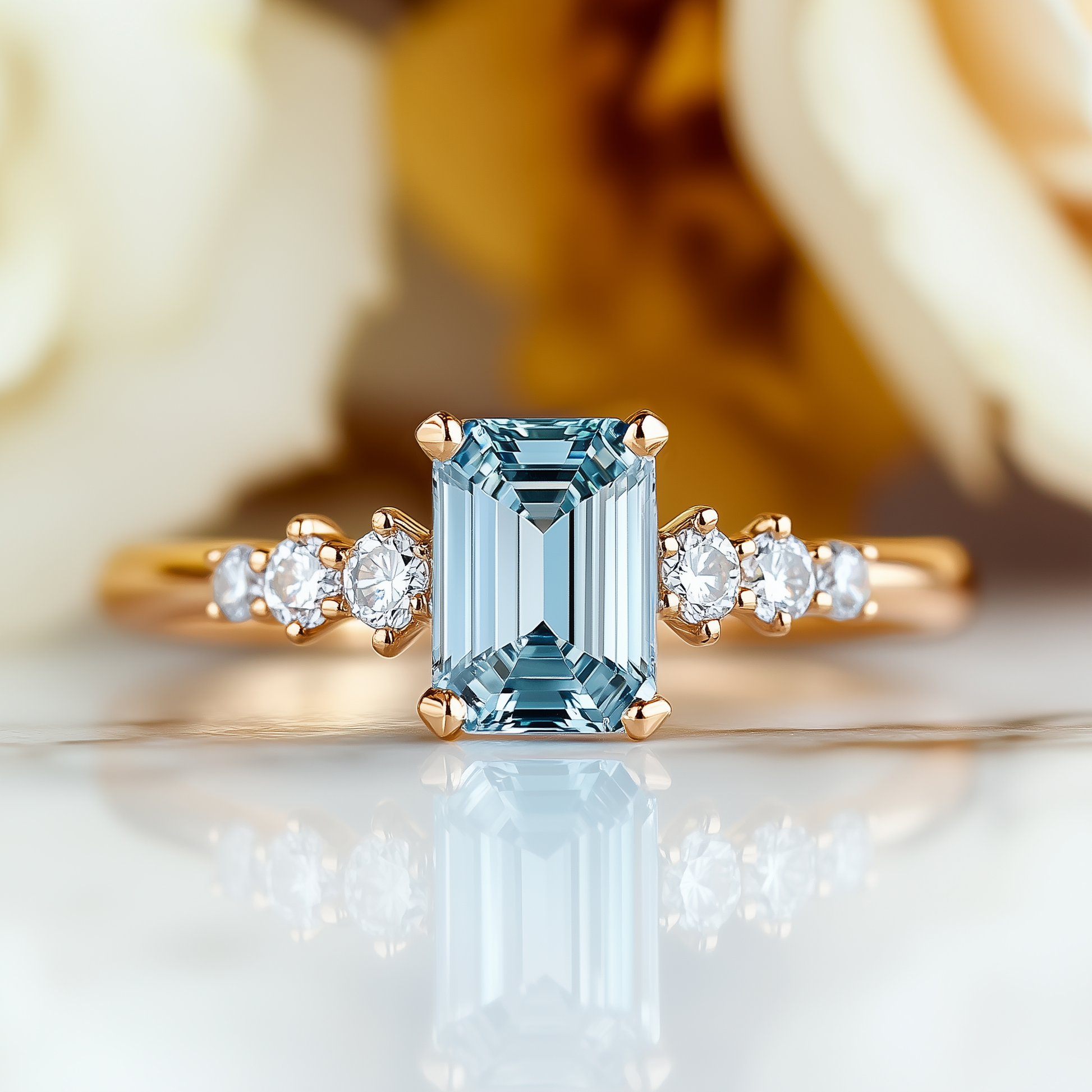 - Stunning 1CT emerald-cut flawless moissanite centerpiece