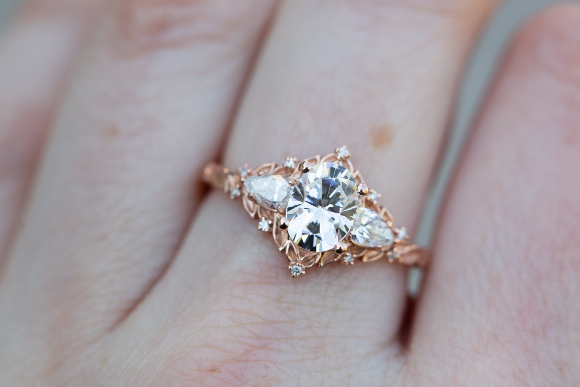 Unique Aurora Moon Oval Moissanite Engagement Ring