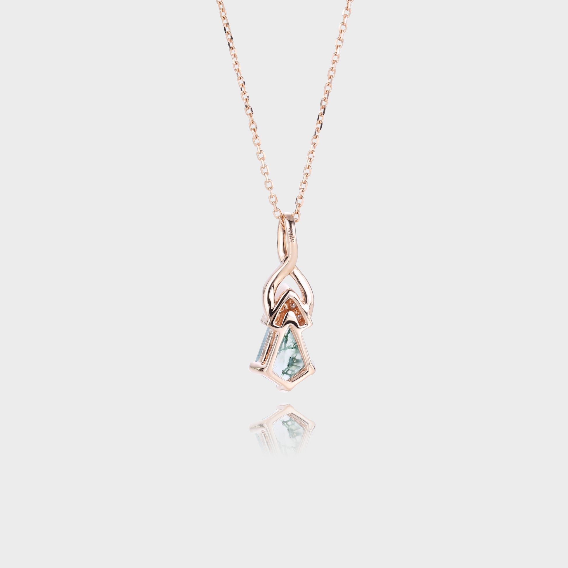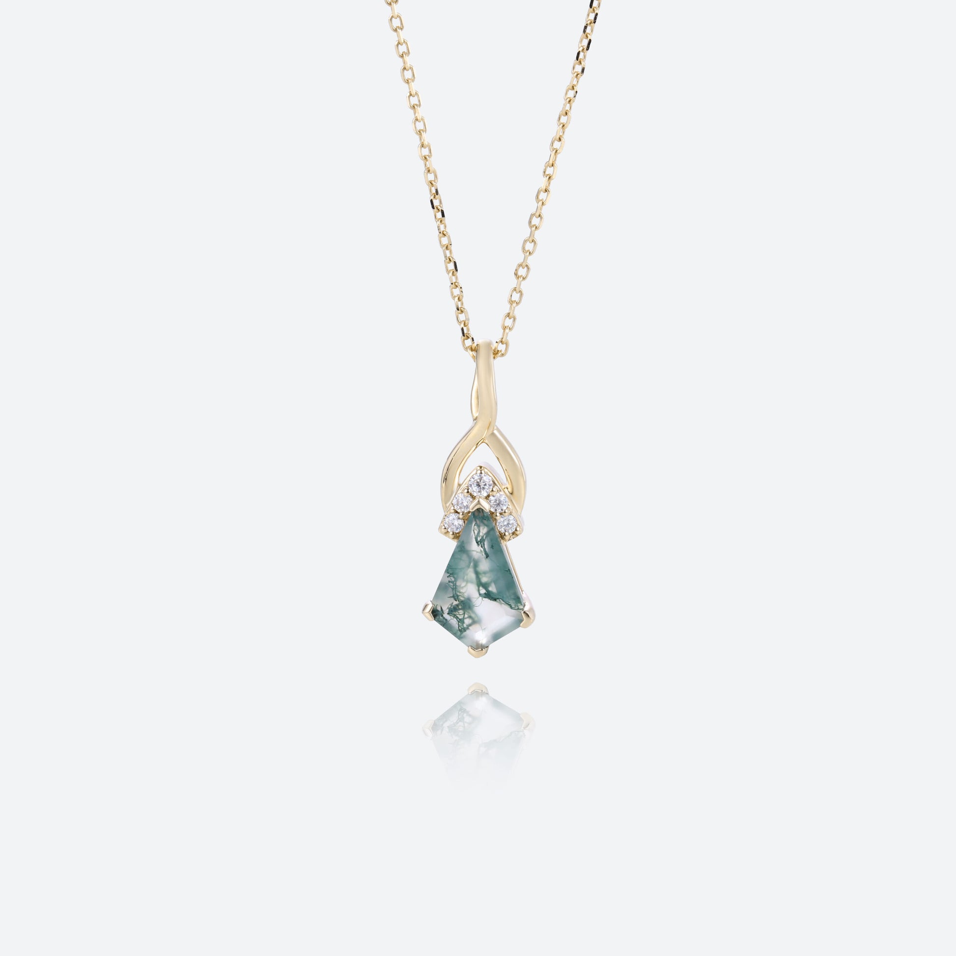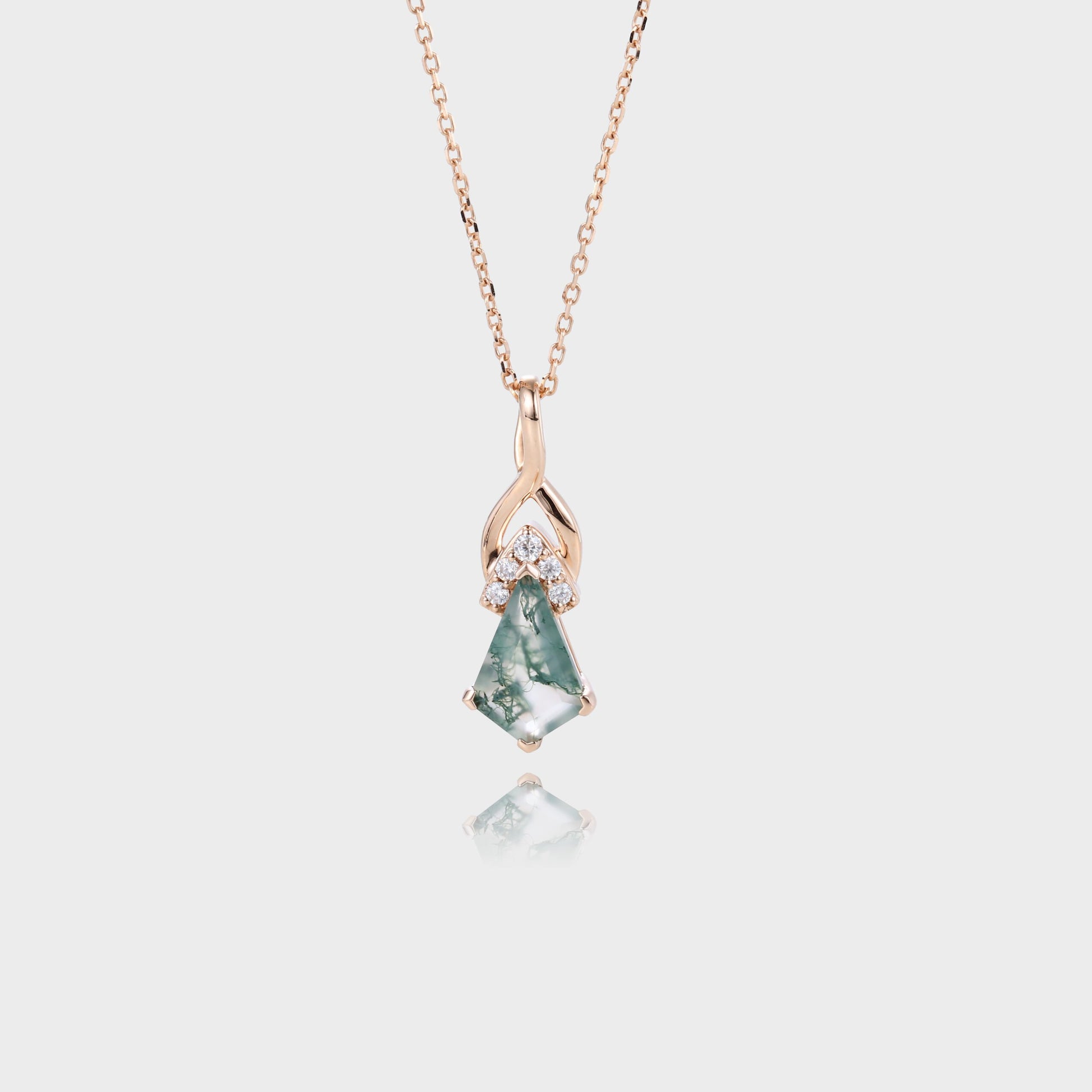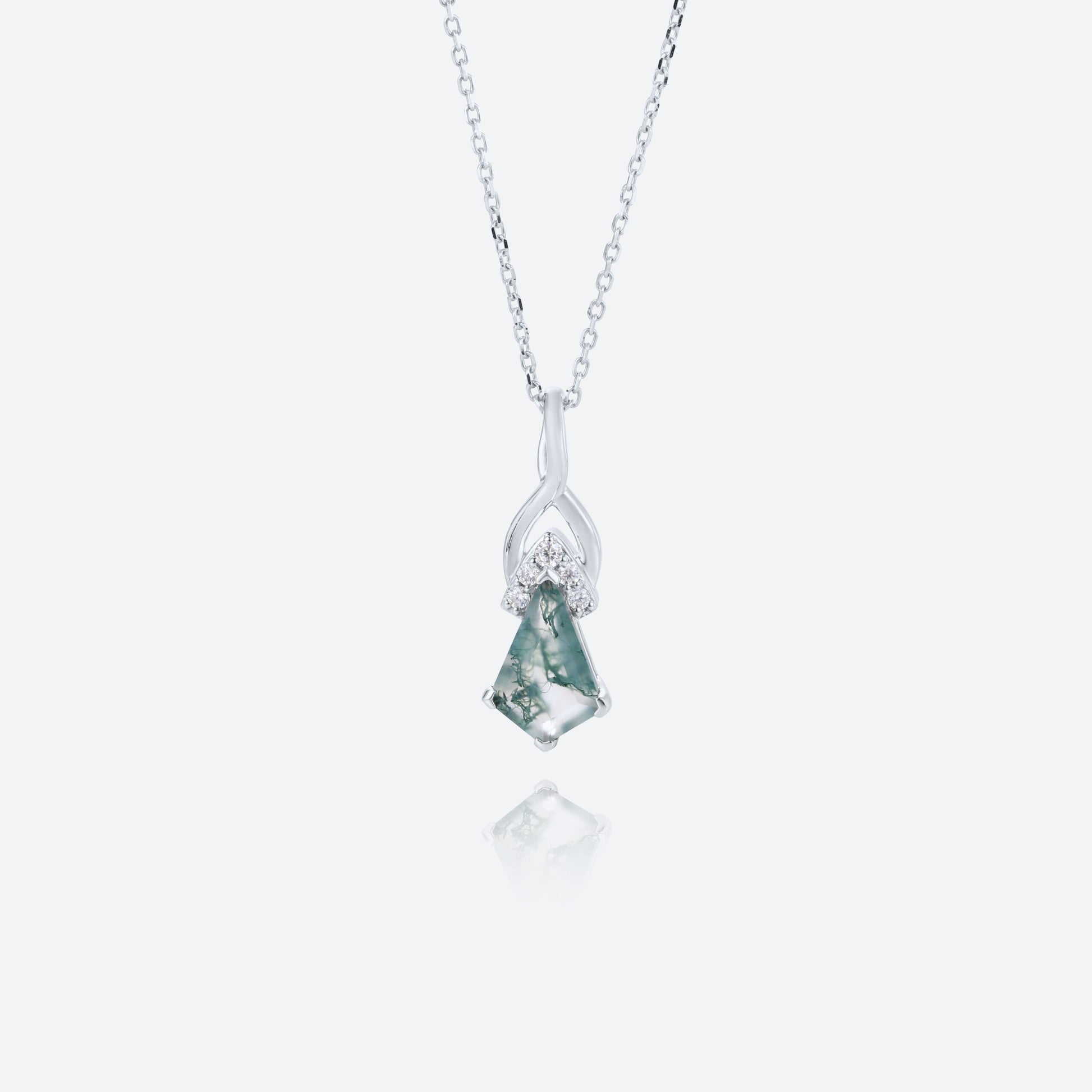 Unique Kite Cut Moss Agate Necklace Fishtail Pendant Necklace