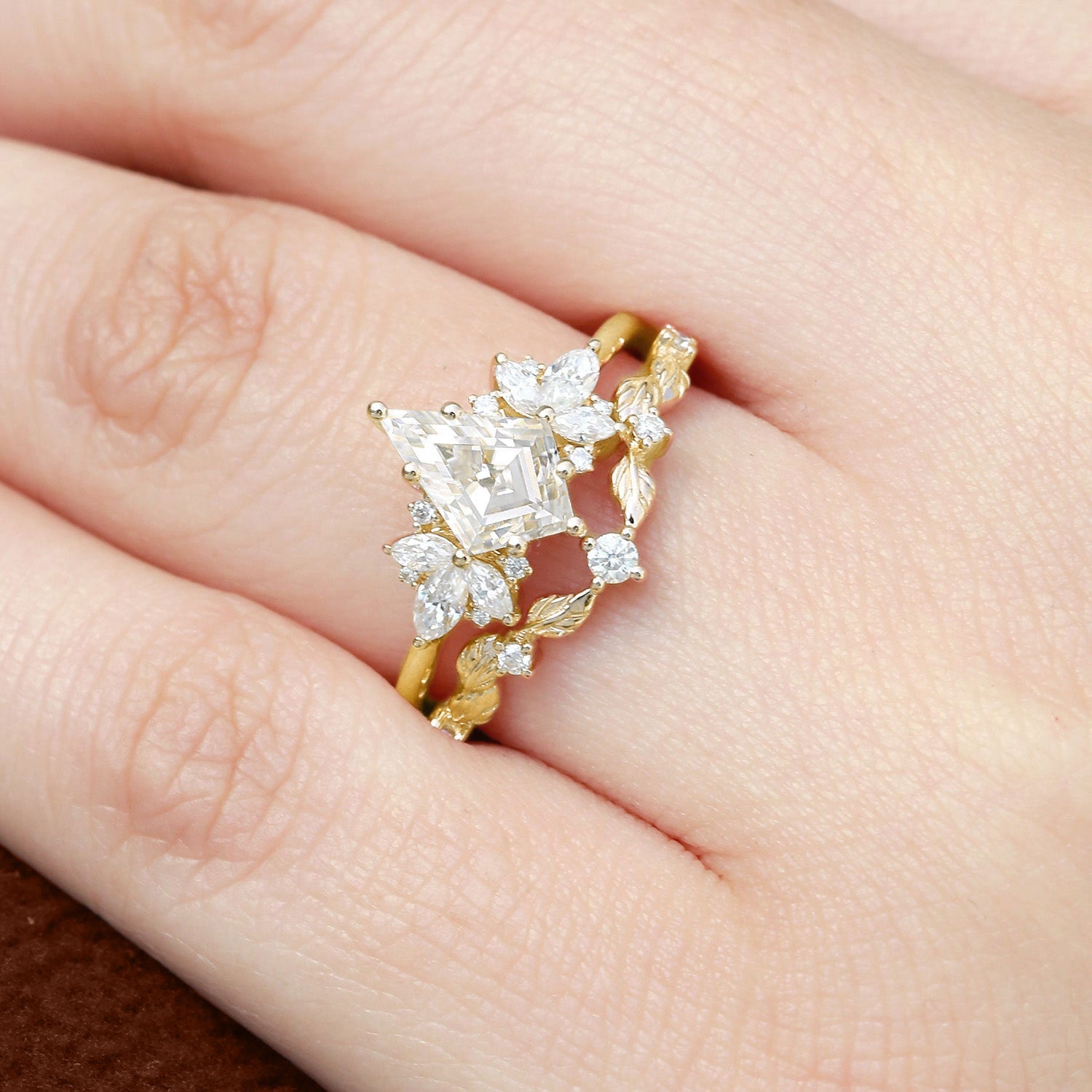 Unique floral engagement rings Kite Moissanite Butterfly Cluster Ring Set