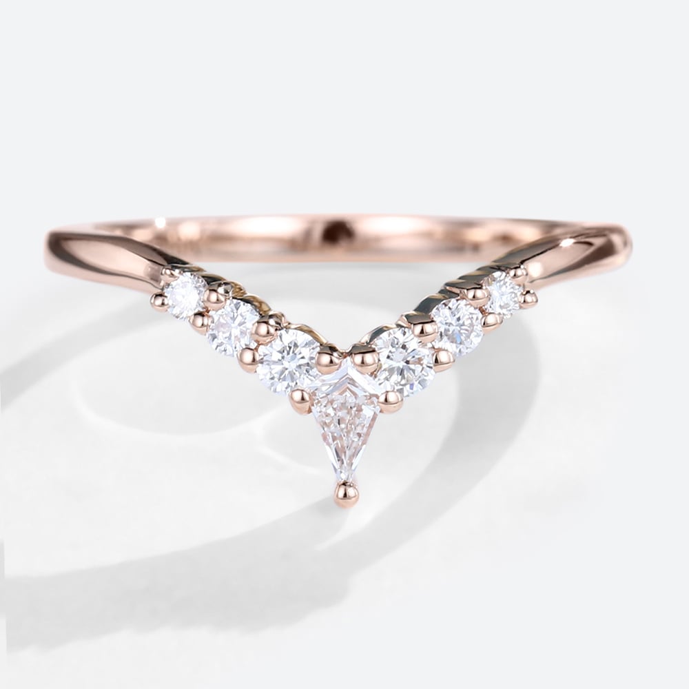 Unique Kite Moissanite Curved Wedding Band Moissanite Stacked Wedding Ring