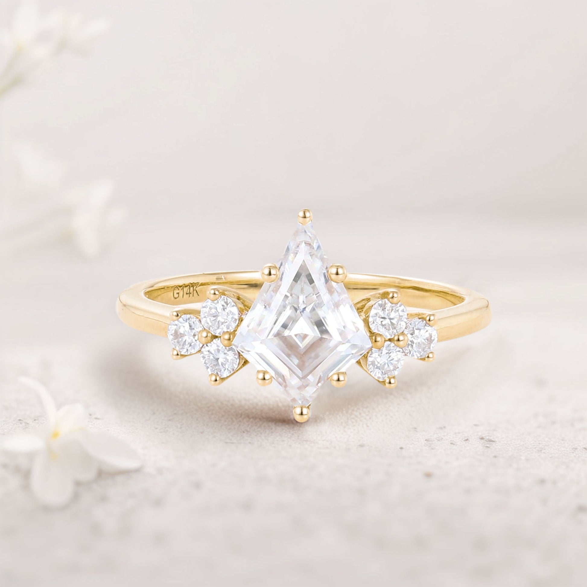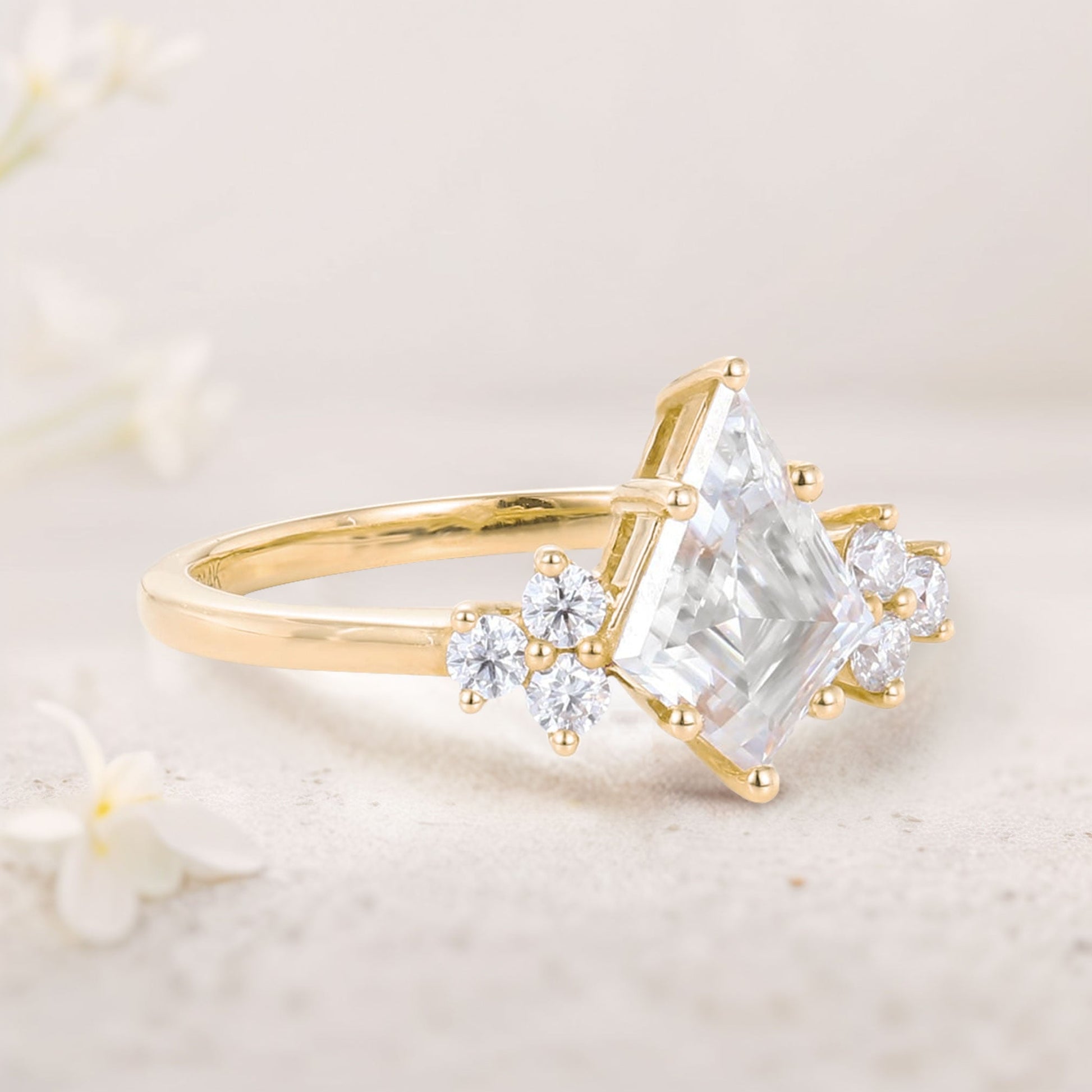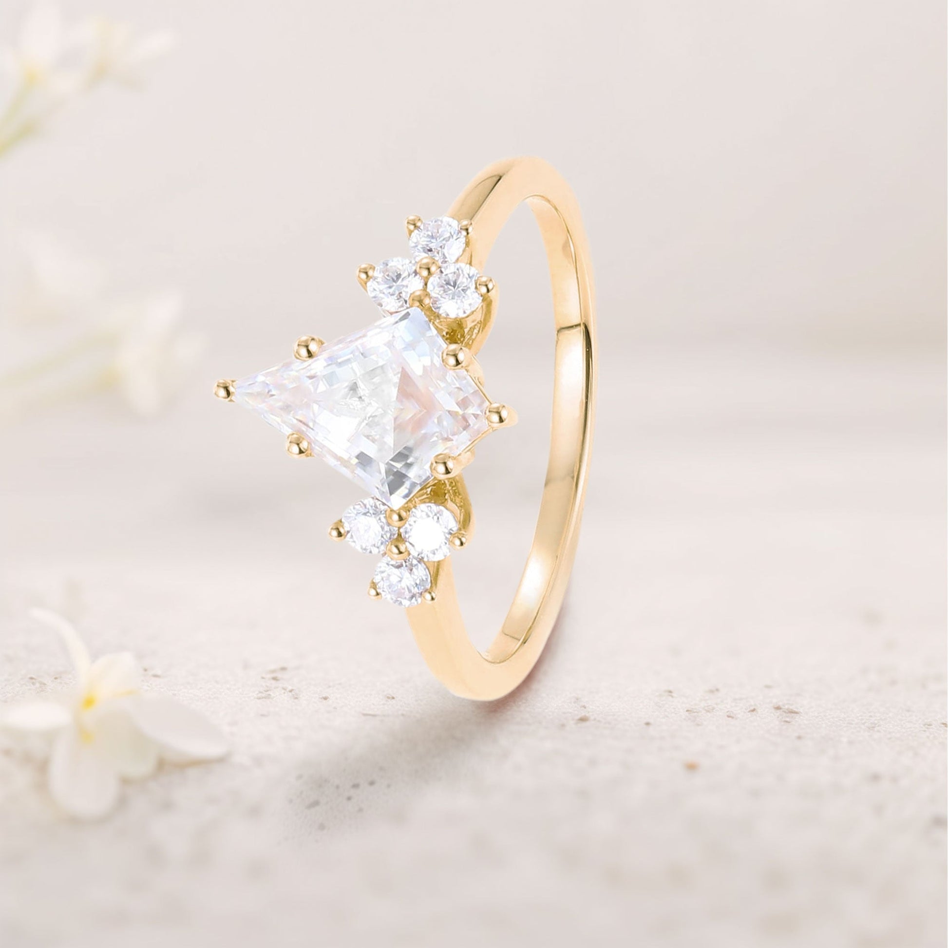 Unique Kite Moissanite Engagement Ring Cluster Promise Ring