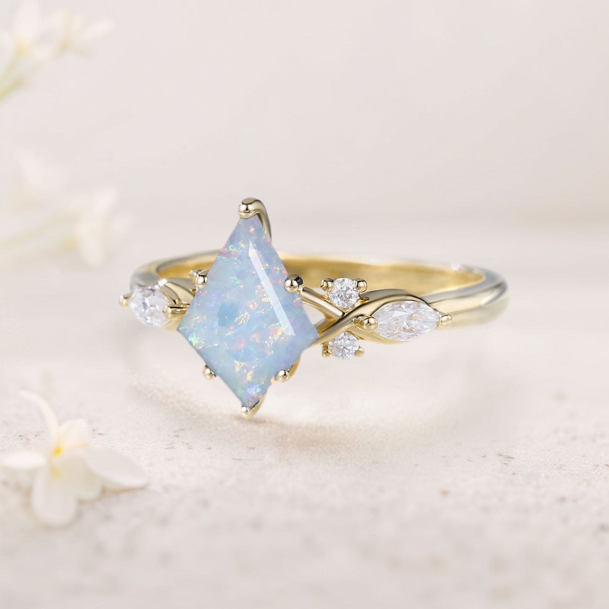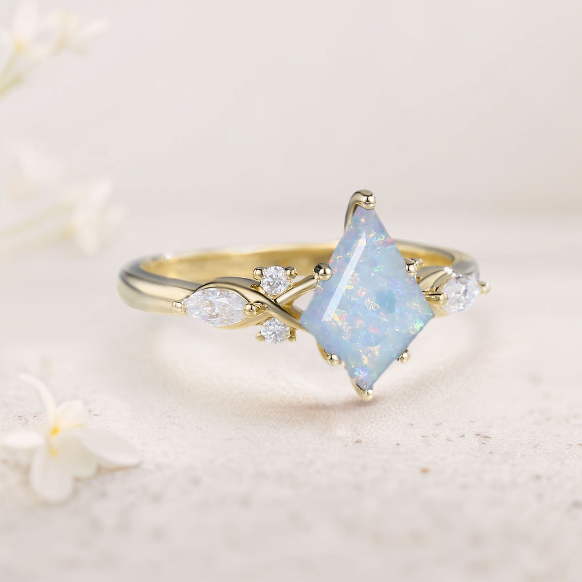 Unique Kite Opal Engagement Ring Art Deco Promise Ring