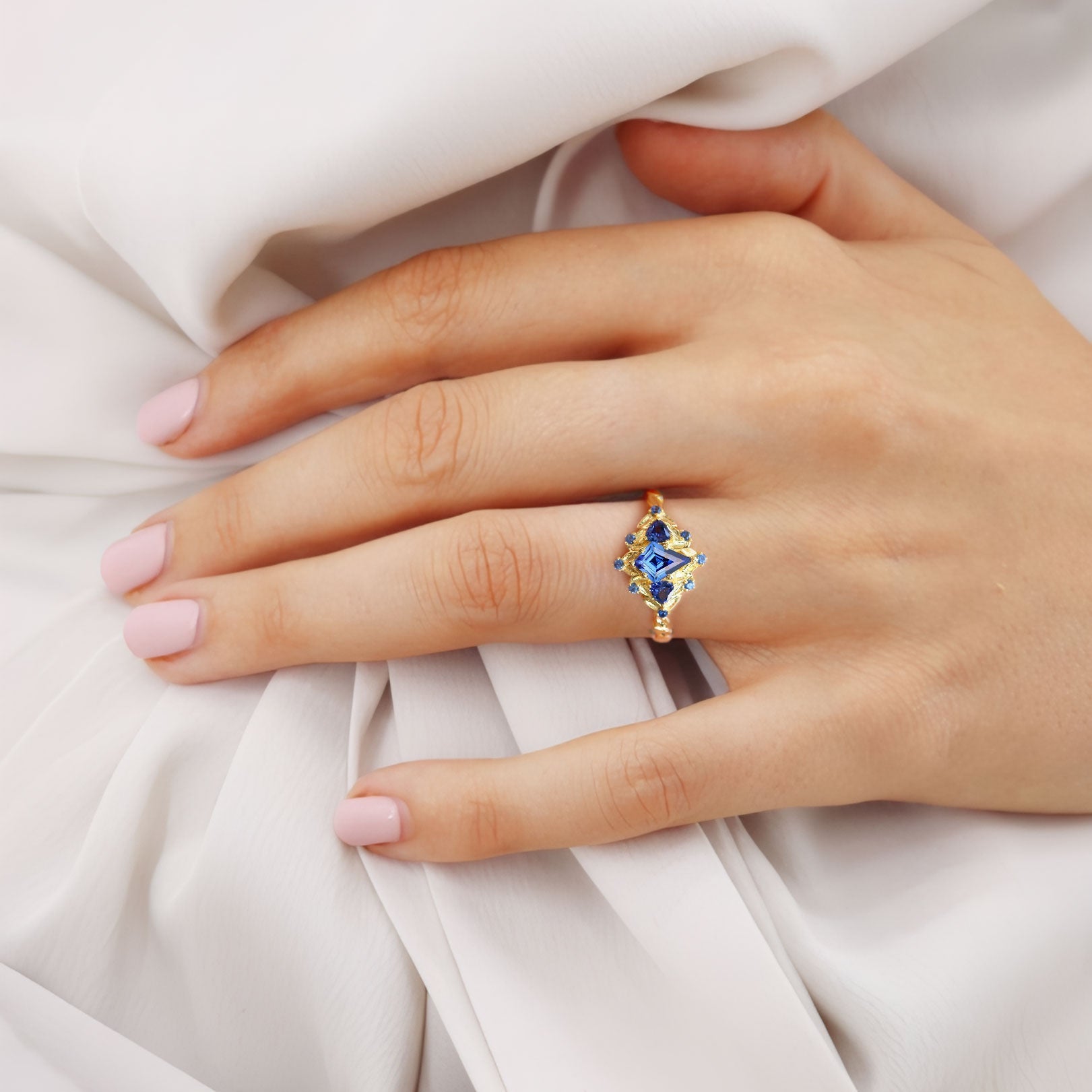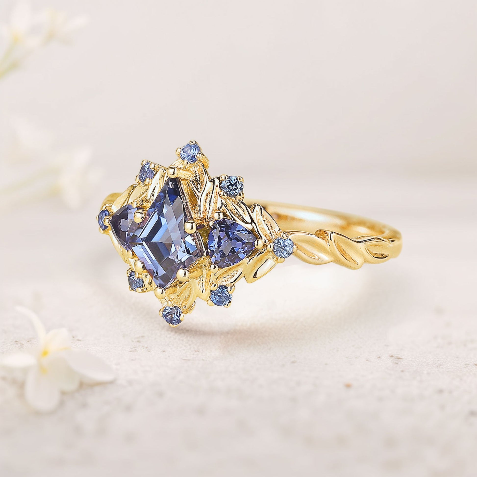 Unique floral engagement rings Kite Sapphire Engagement Ring Leaf Flower Wedding Ring