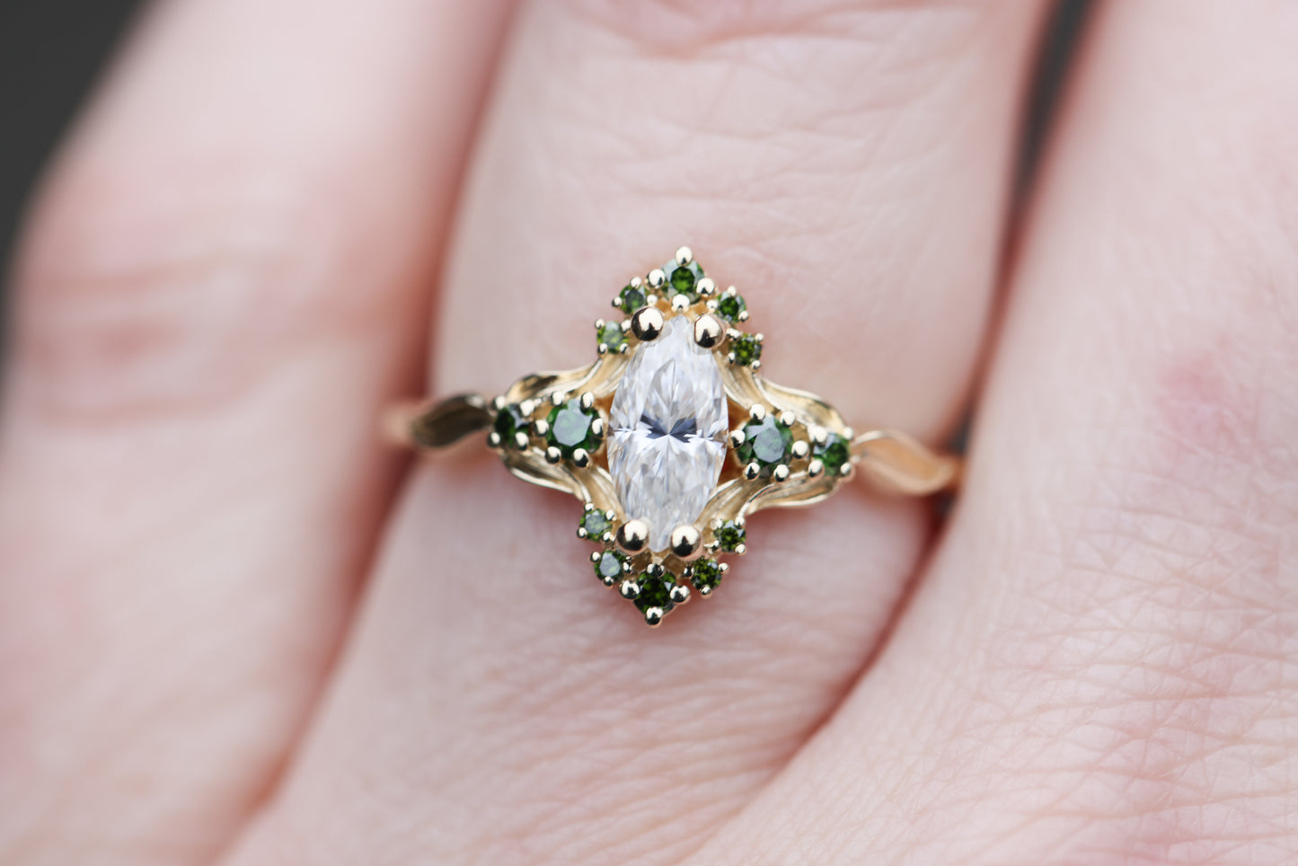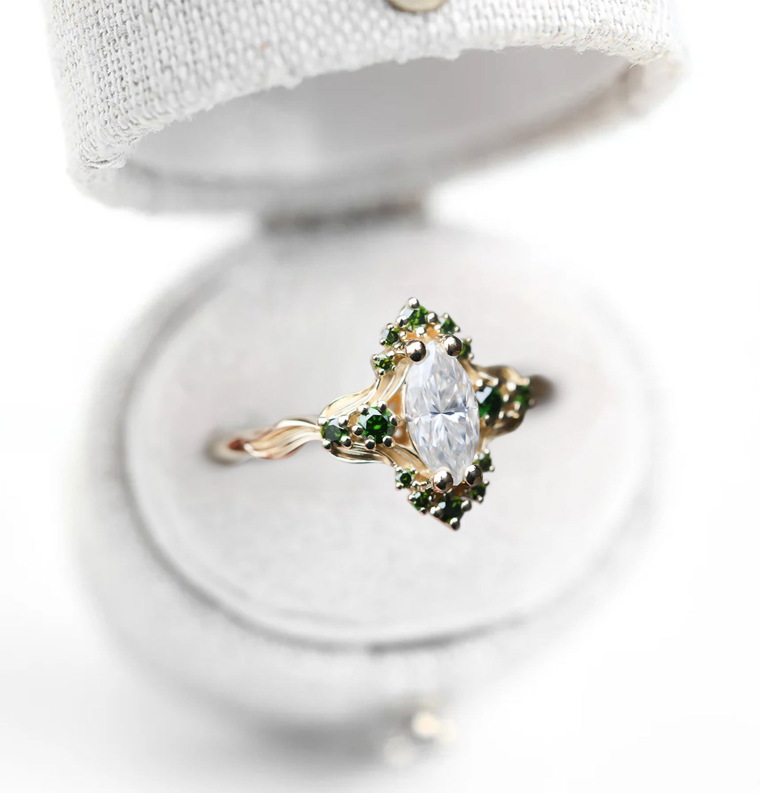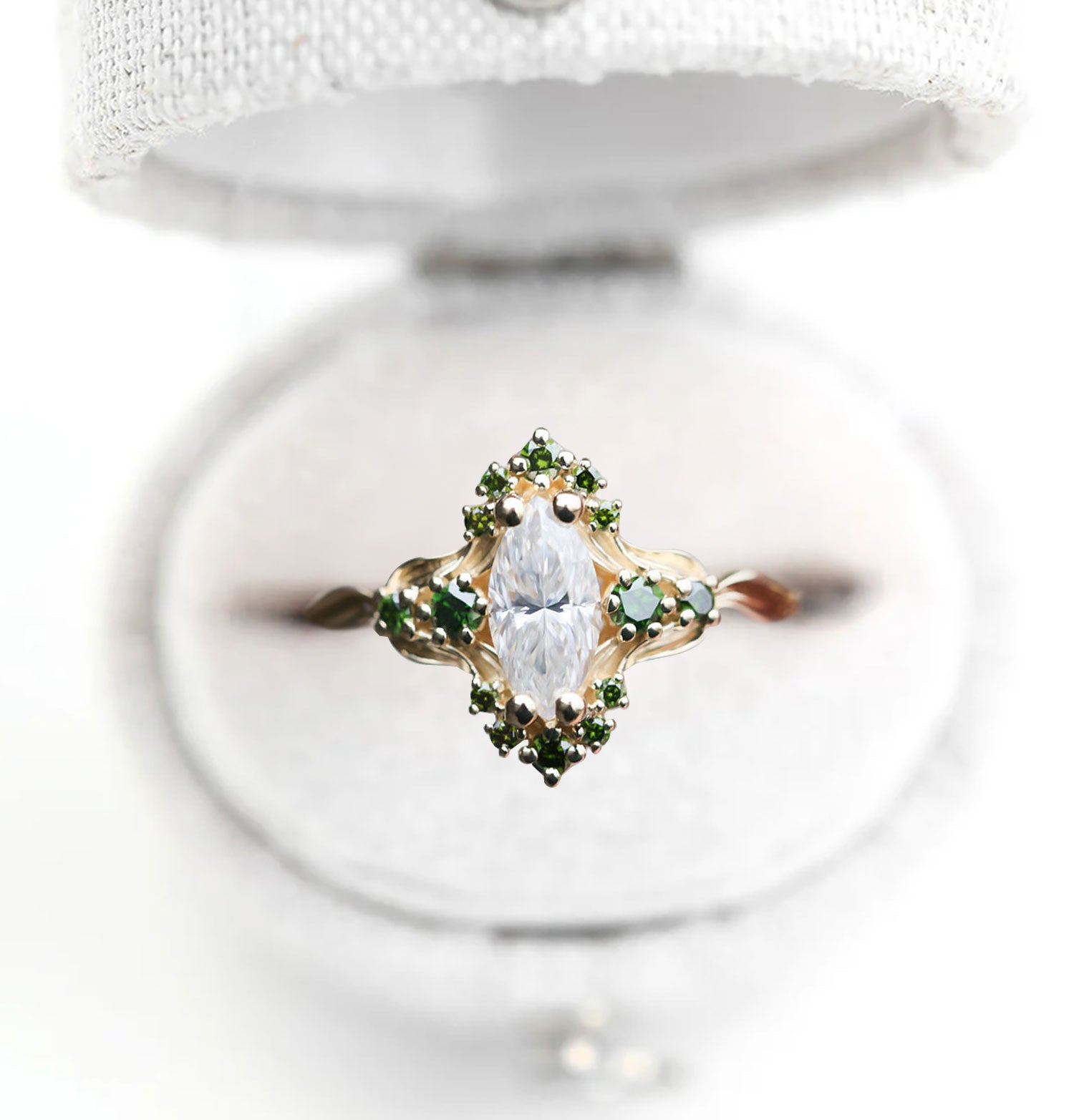 Unique Astraea Half Halo Marquise Moissanite Ring