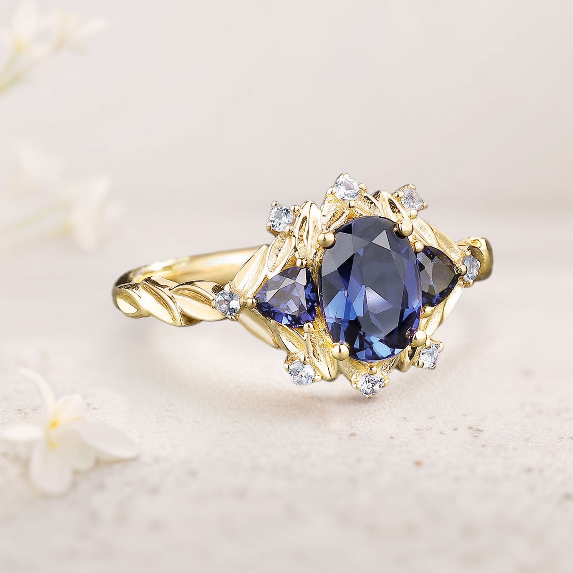 Unique floral engagement rings Oval Blue Sapphire Cluster Wedding Ring Fairy Engagement Ring