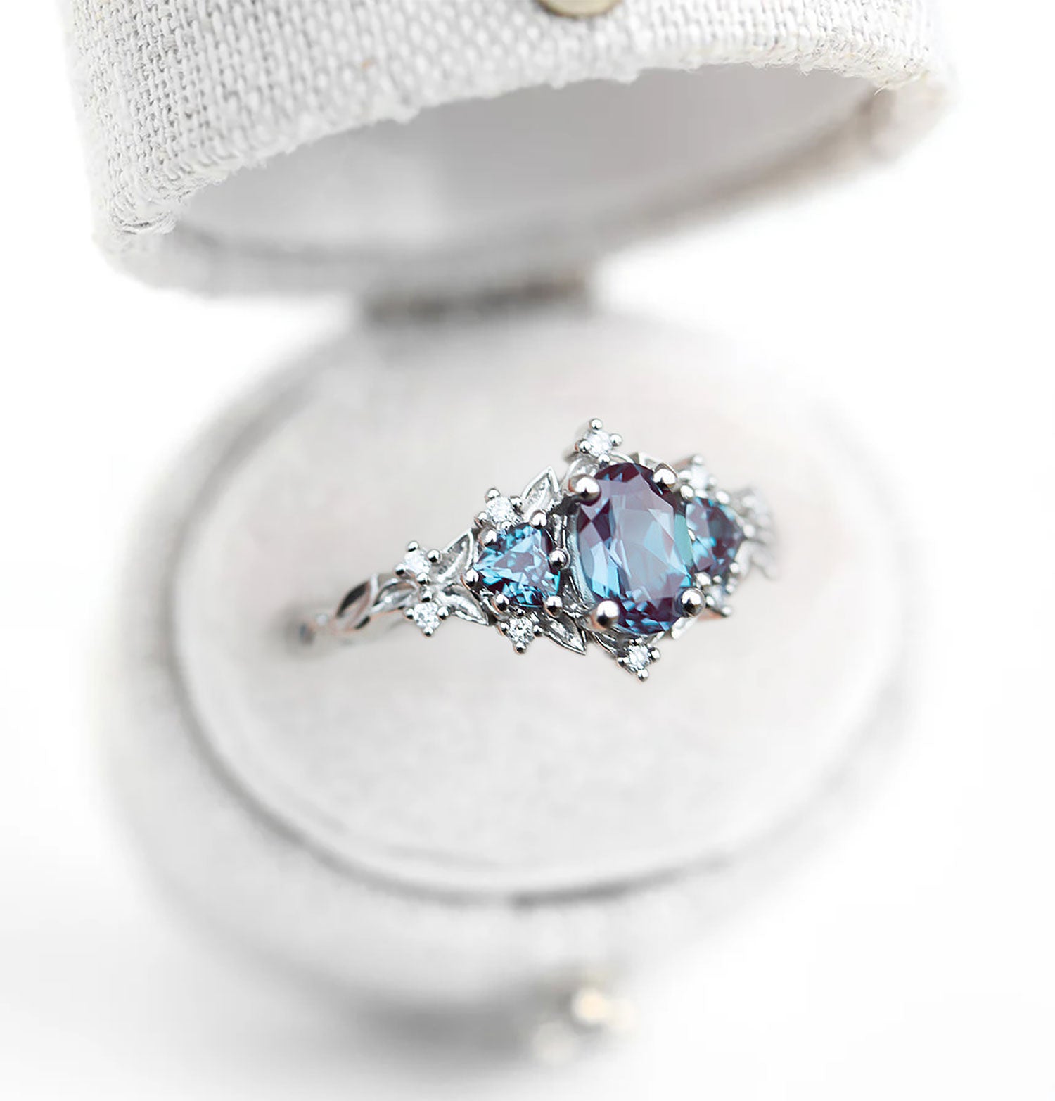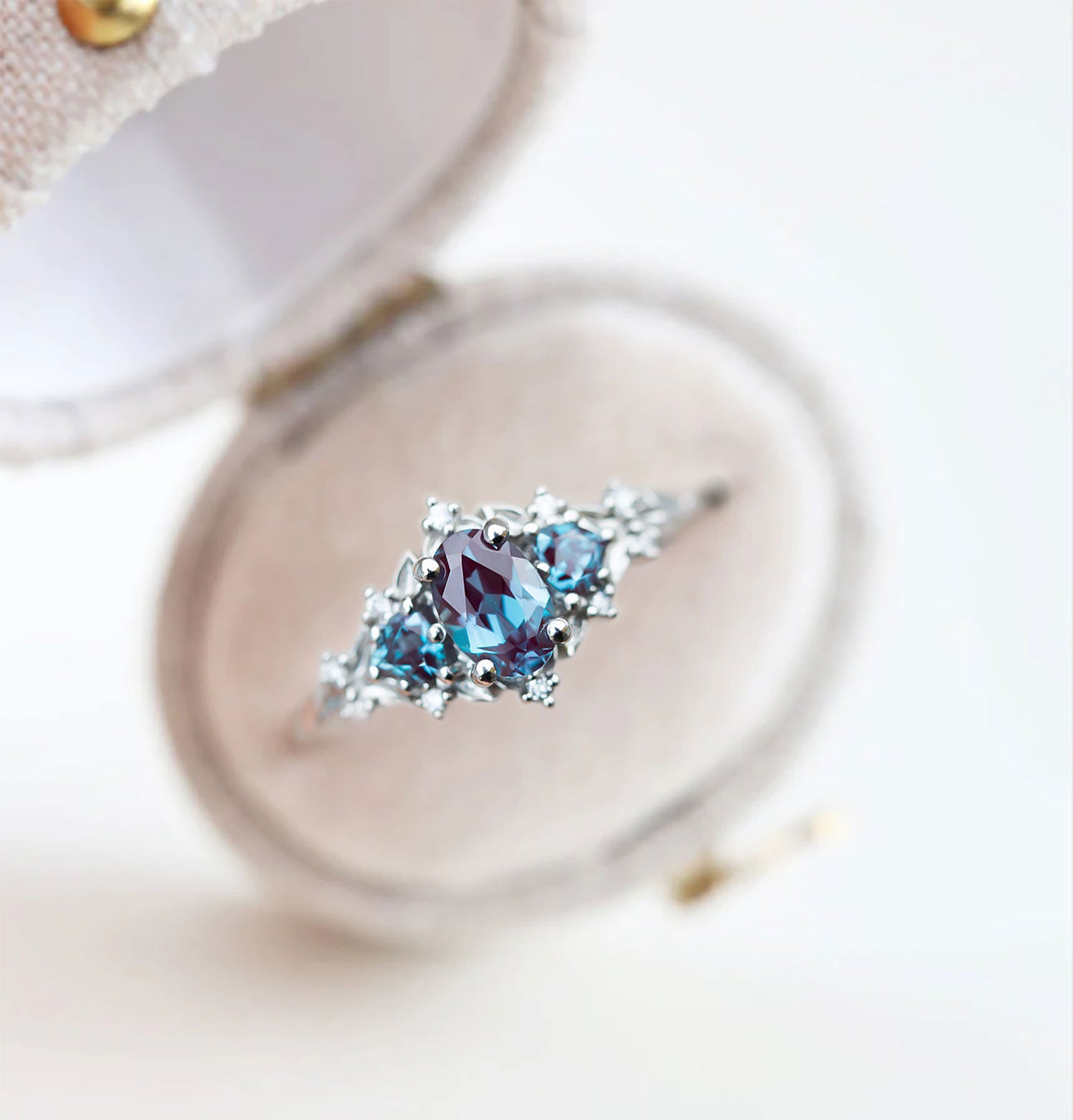Unique Floral Rose Oval Lab Alexandrite Ring