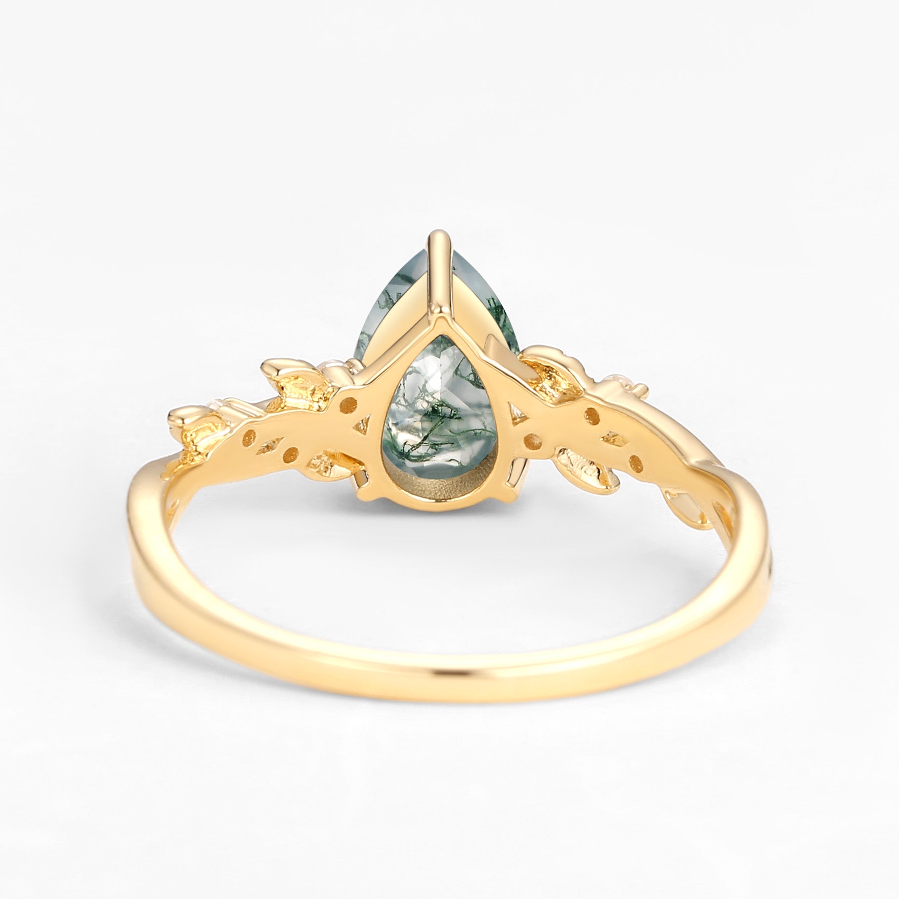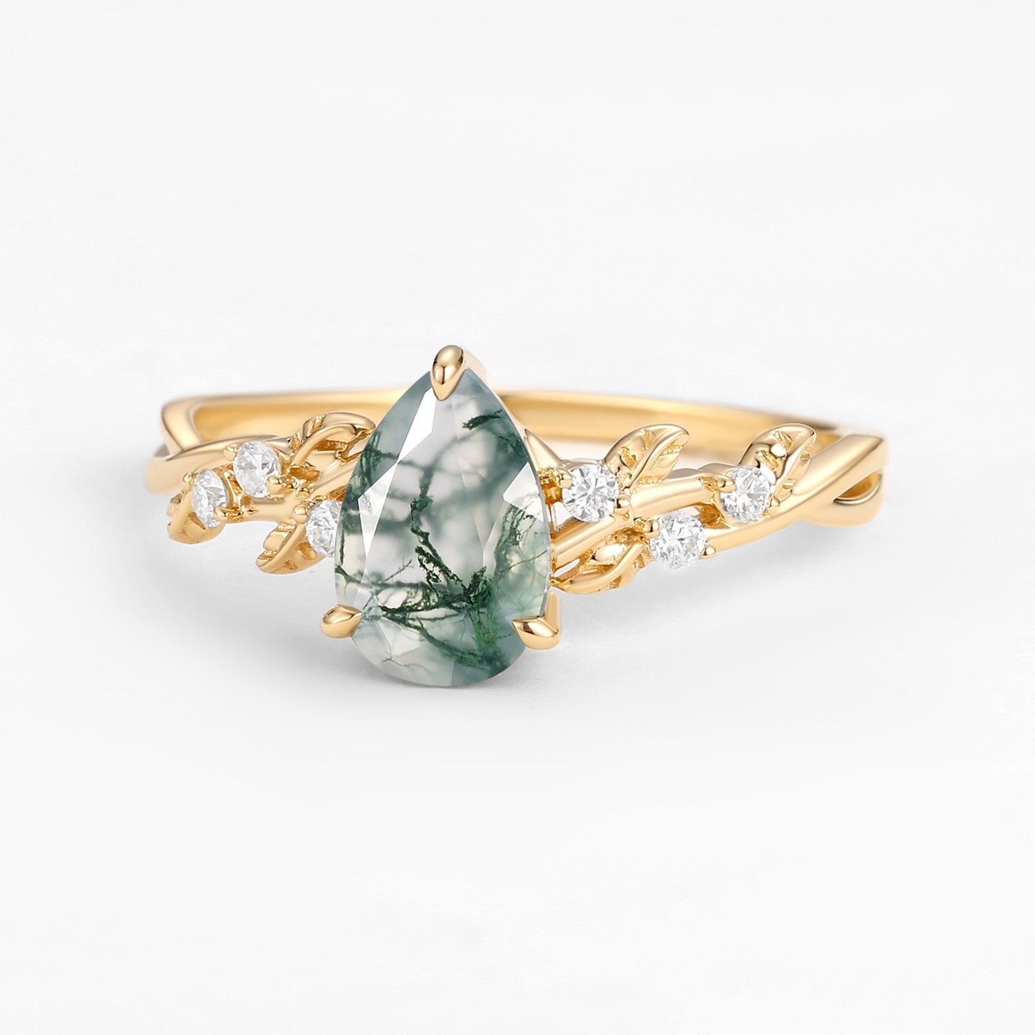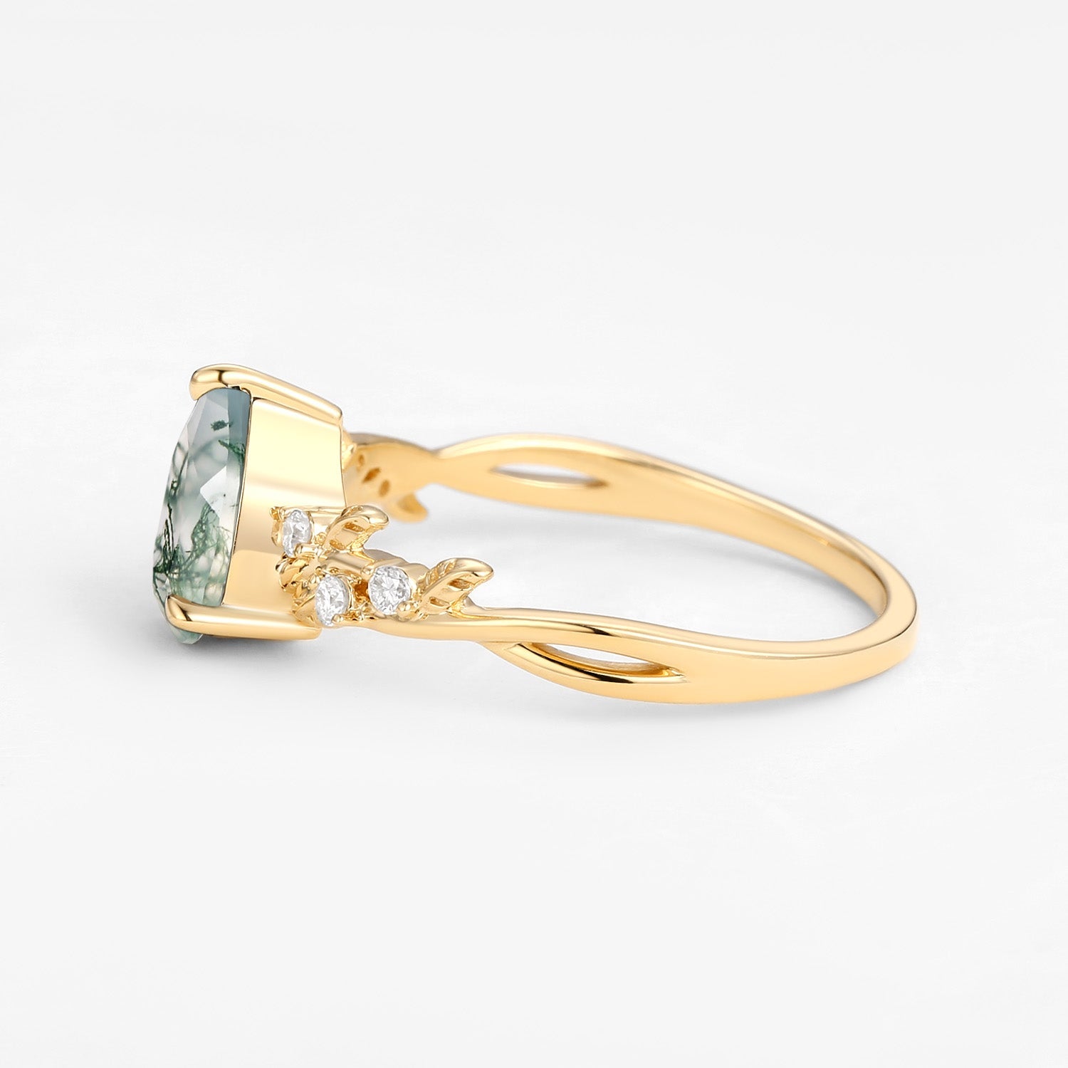 Unique Pear Cut Infinity Nature Inspired Moss Agate Ring