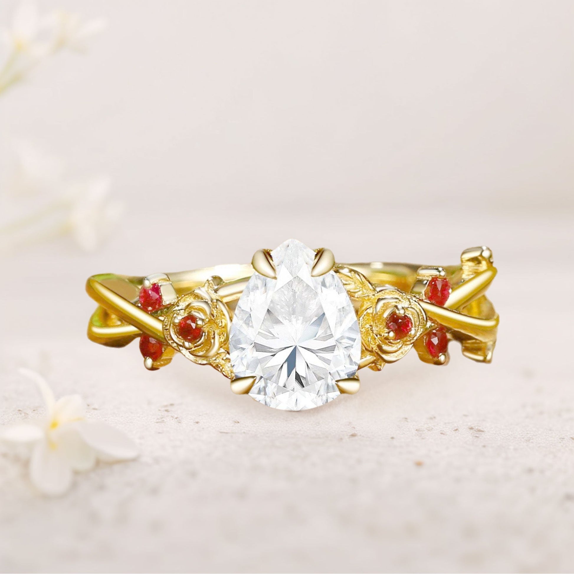Unique floral engagement rings Pear Moissanite Rose Flower Inspired Engagement Ring