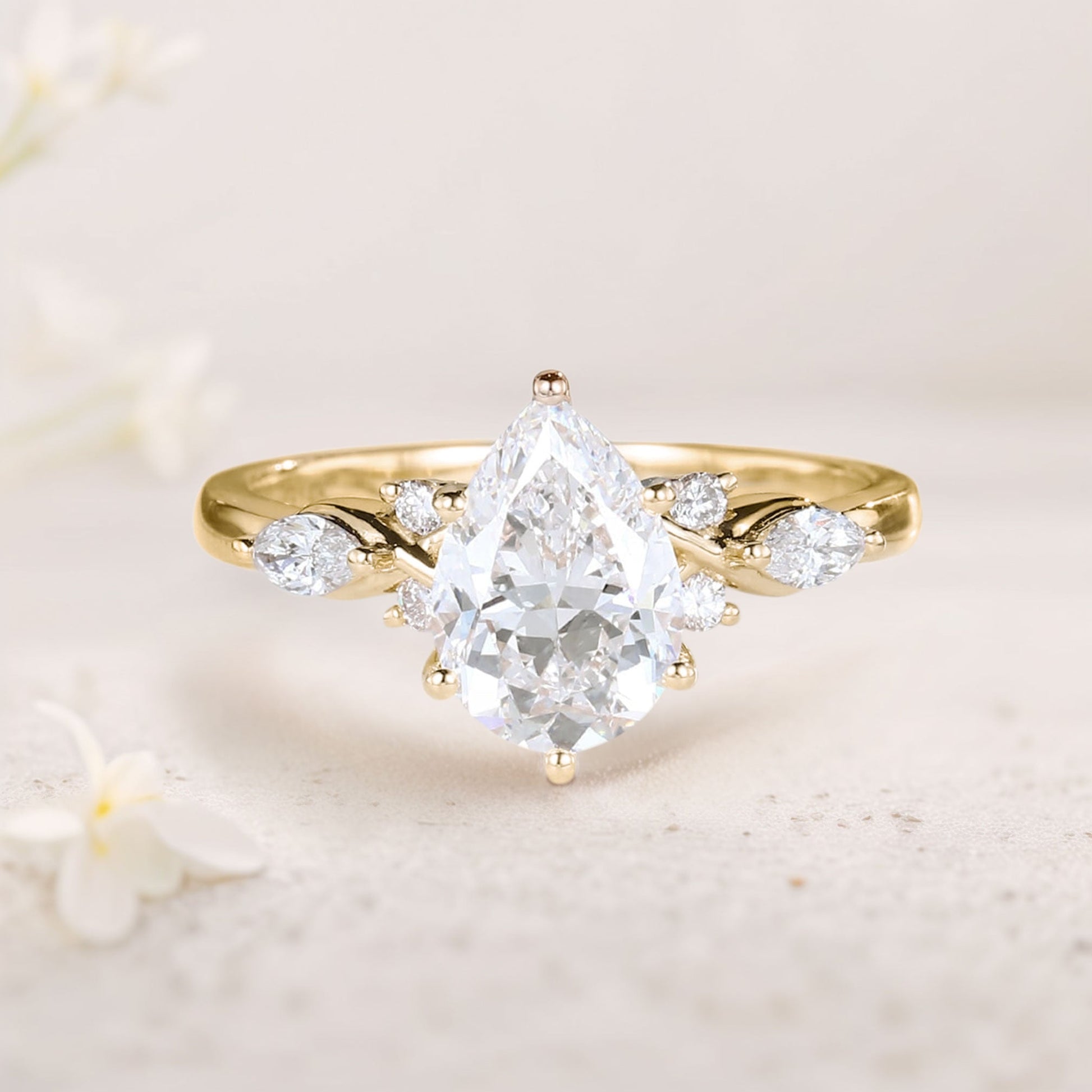 Unique Pear Moissanite Twist Ring Engagement Ring