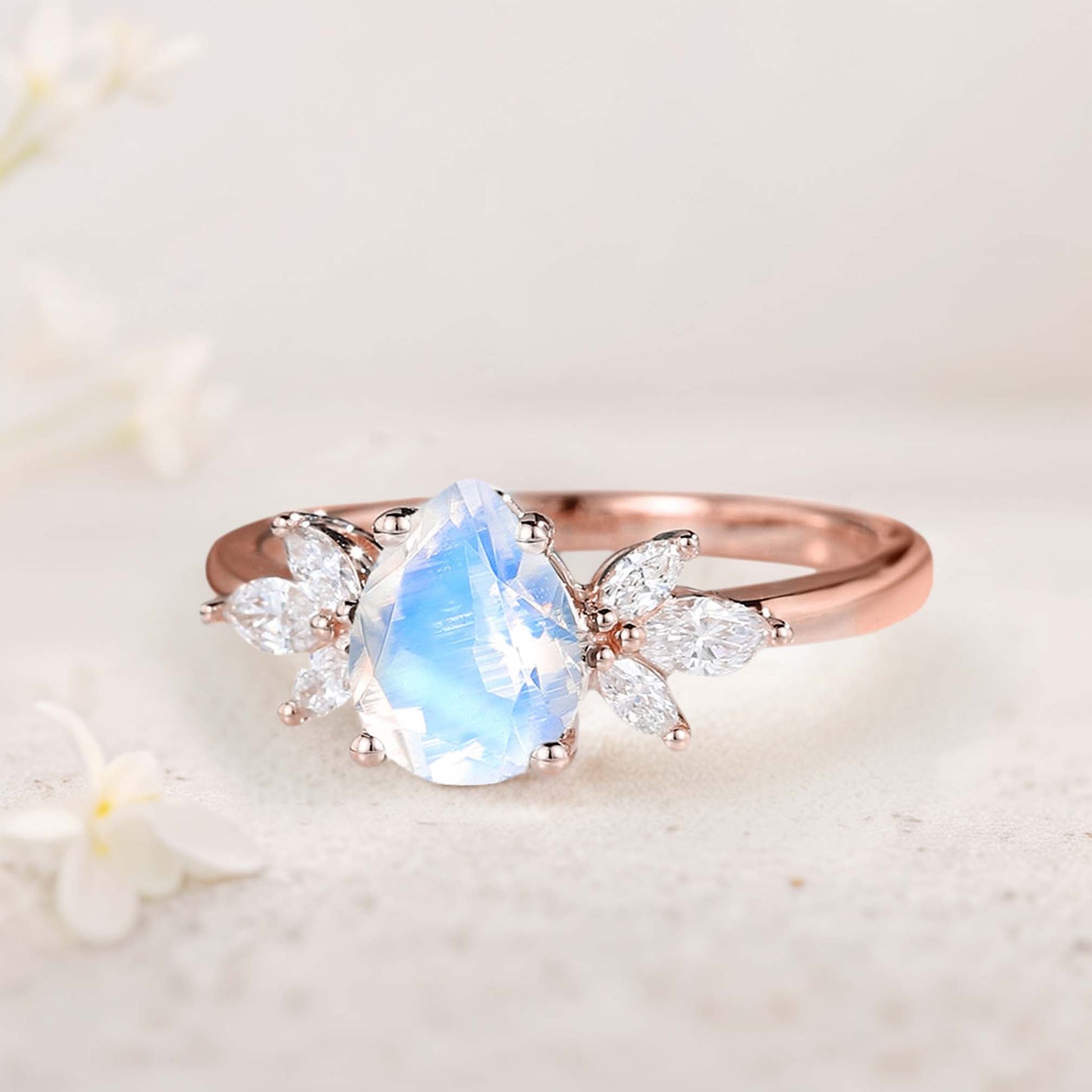 Unique Pear Moonstone Engagement Ring Simple Cluster Bridal Ring