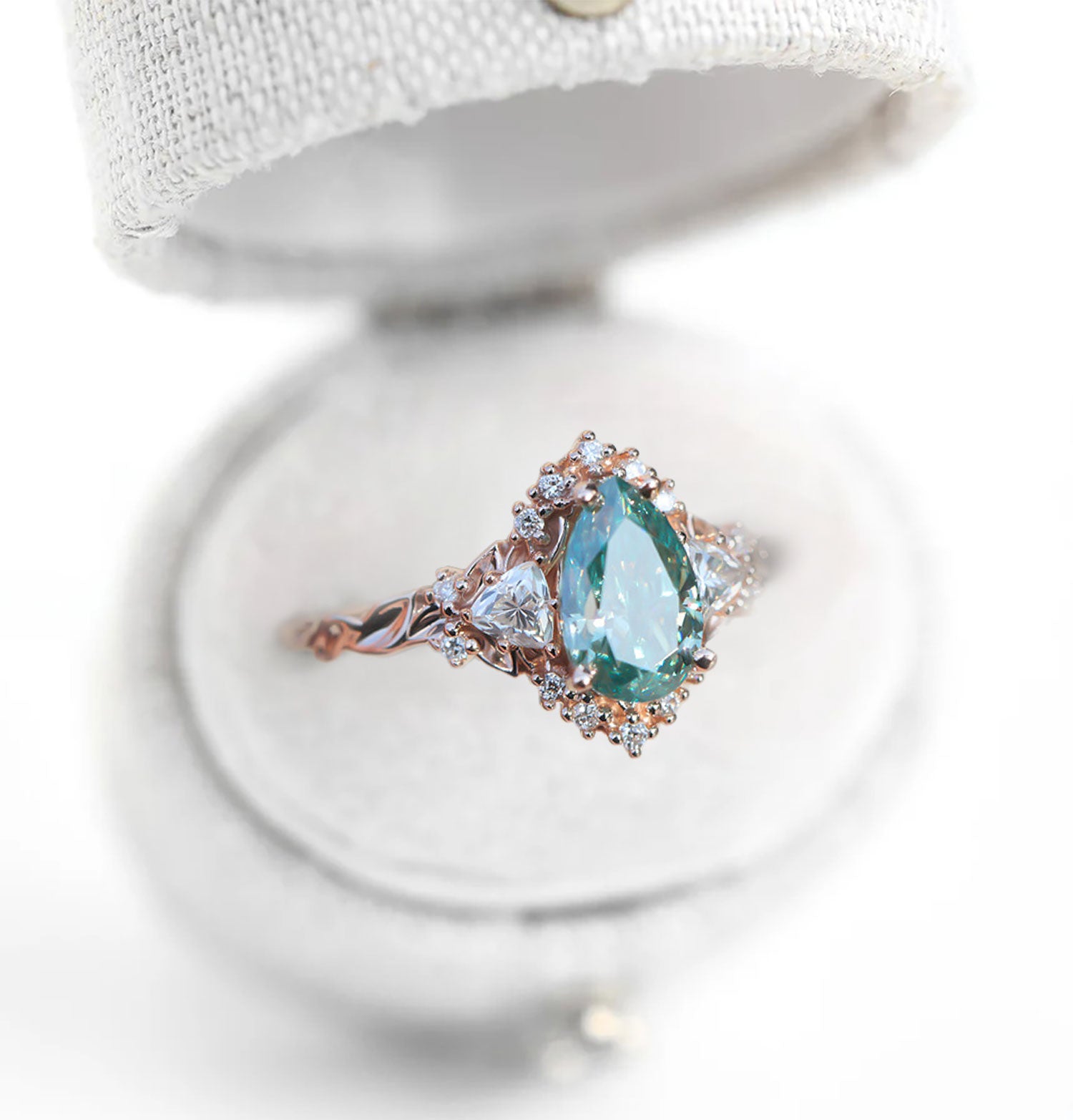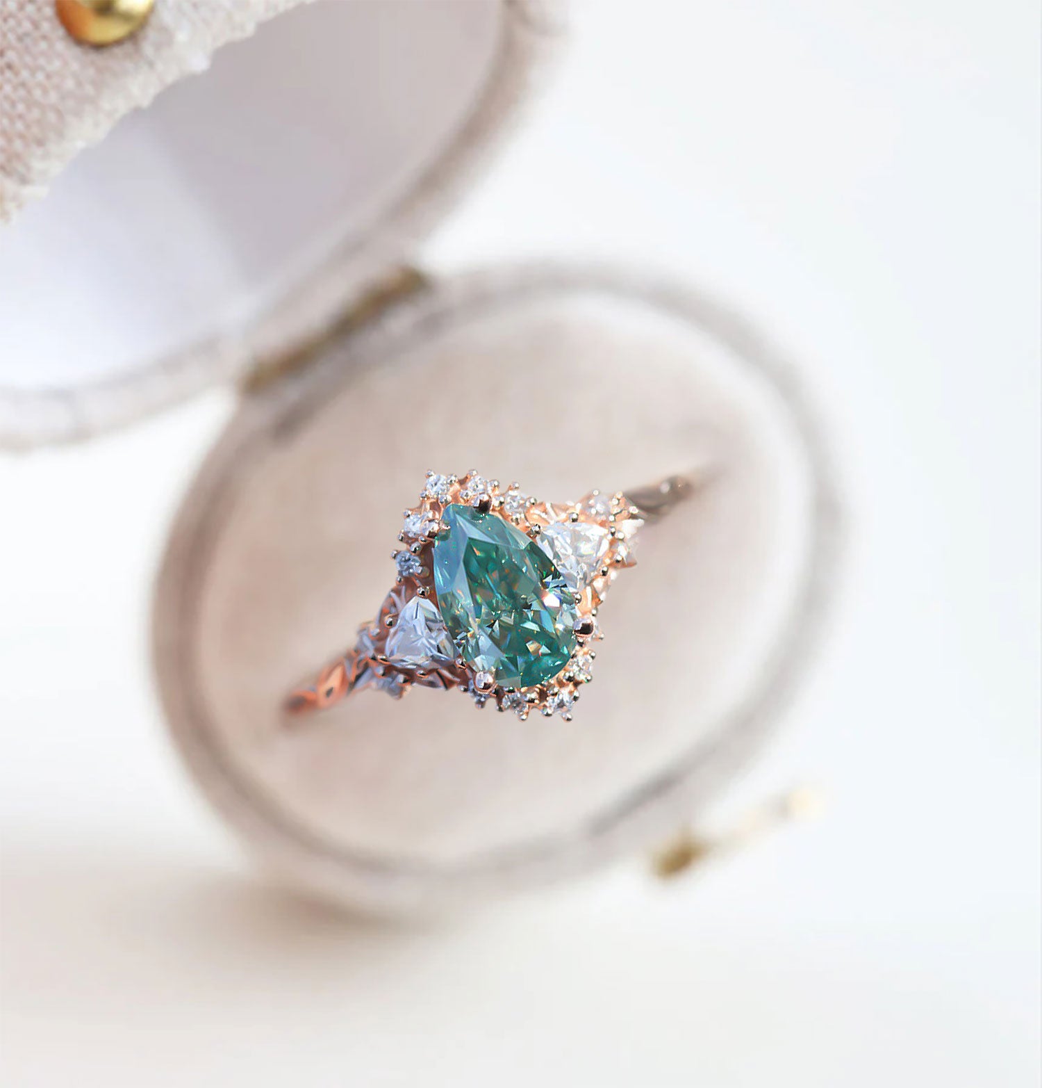Unique Briar Half Halo Pear Teal Moissanite Ring