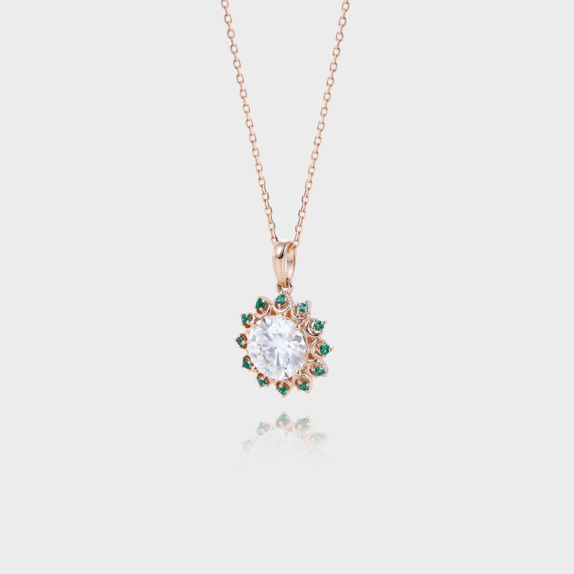 Unique Round Cut Moissanite Necklace Emerald Halo Accented Pendant Gift For Women