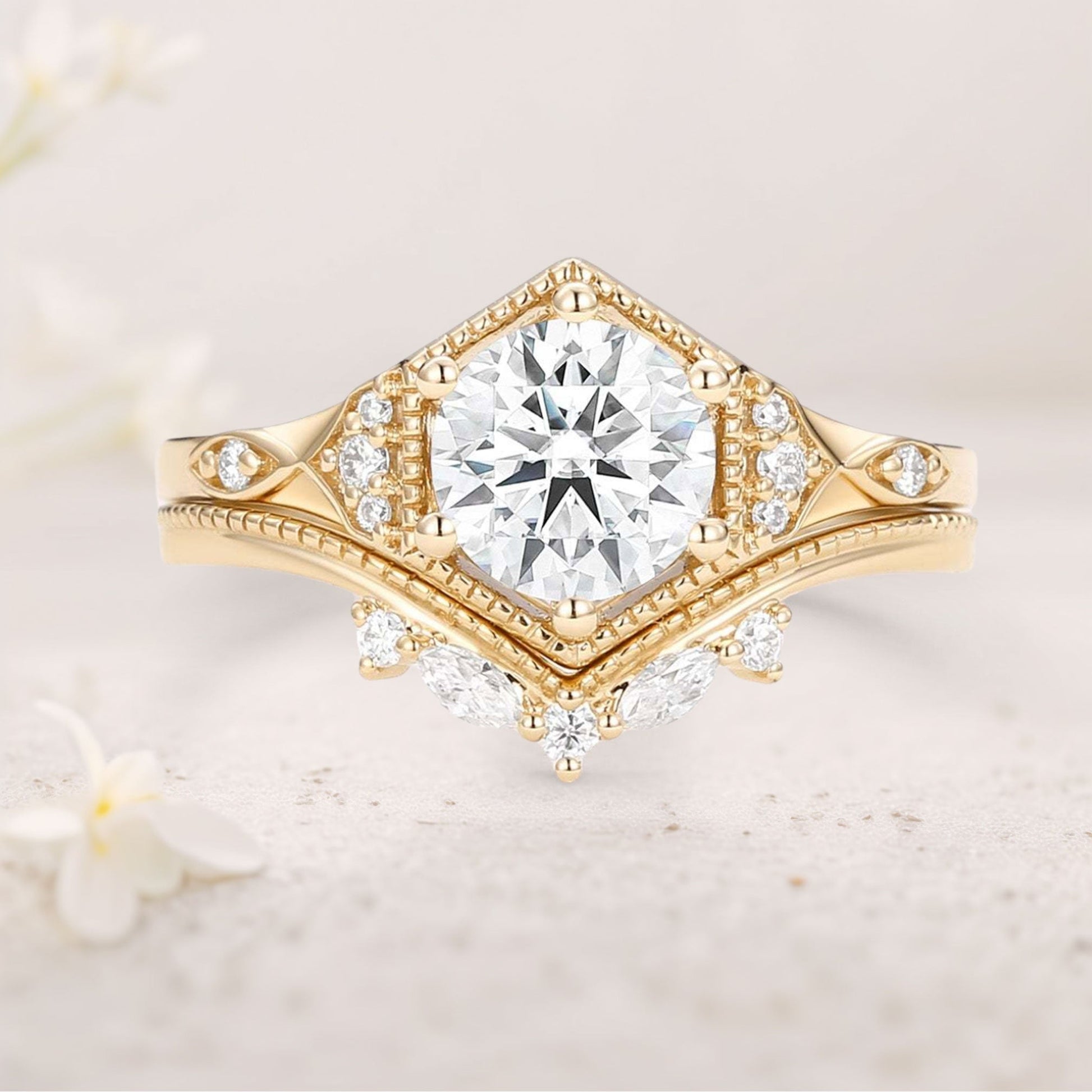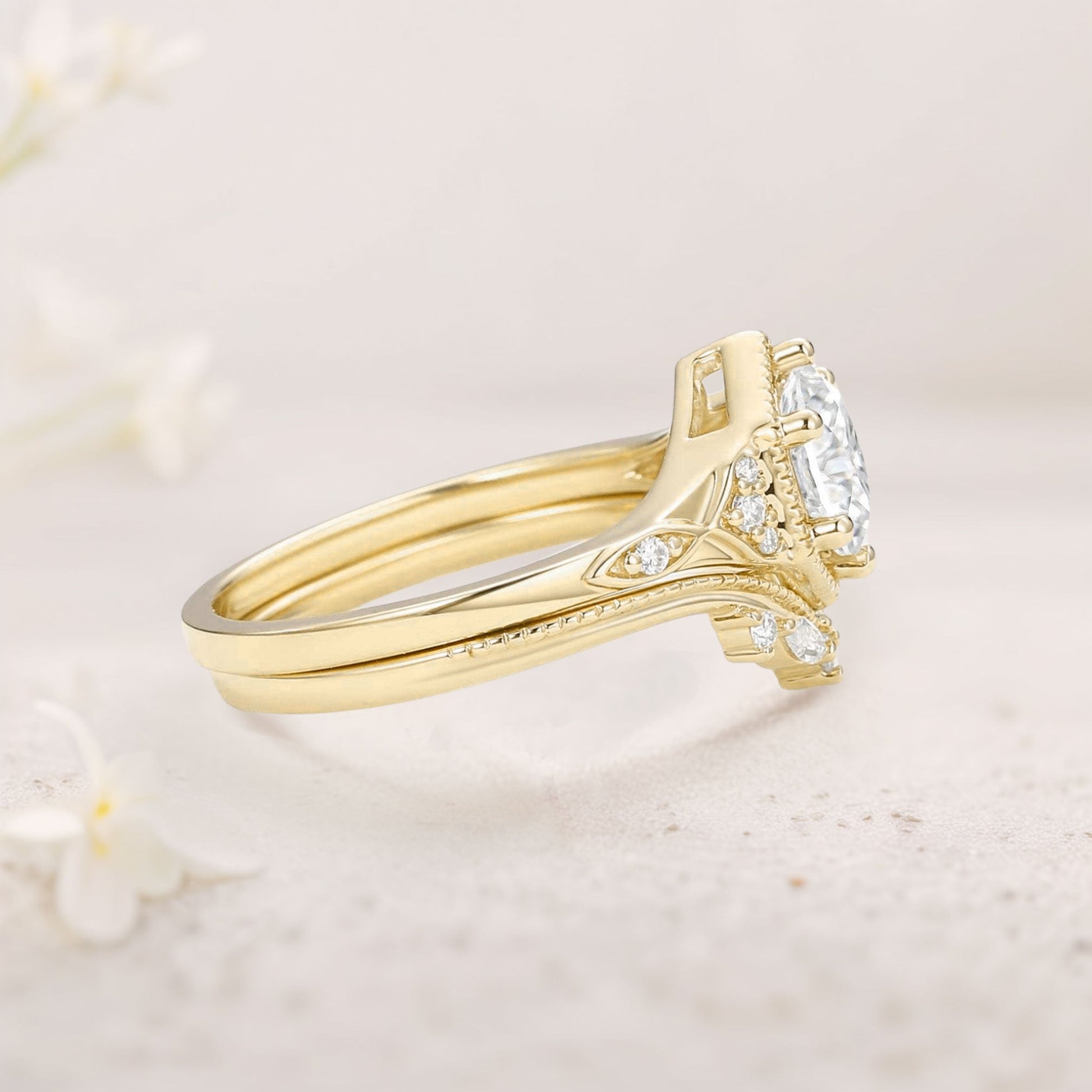 Unique floral engagement rings Round Moissanite Wedding Ring Set For Women
