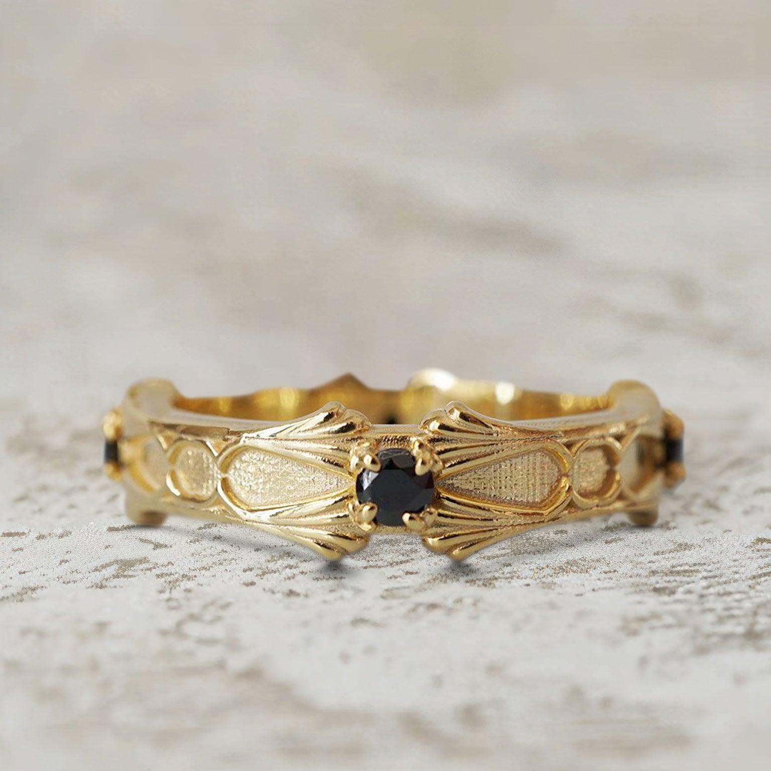 Unique Gothic Round Lab Black Onyx Ring Band For Men