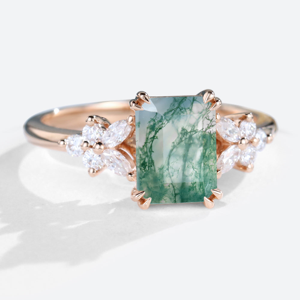 Vintage Emerald Cut Moss Agate Engagement Ring