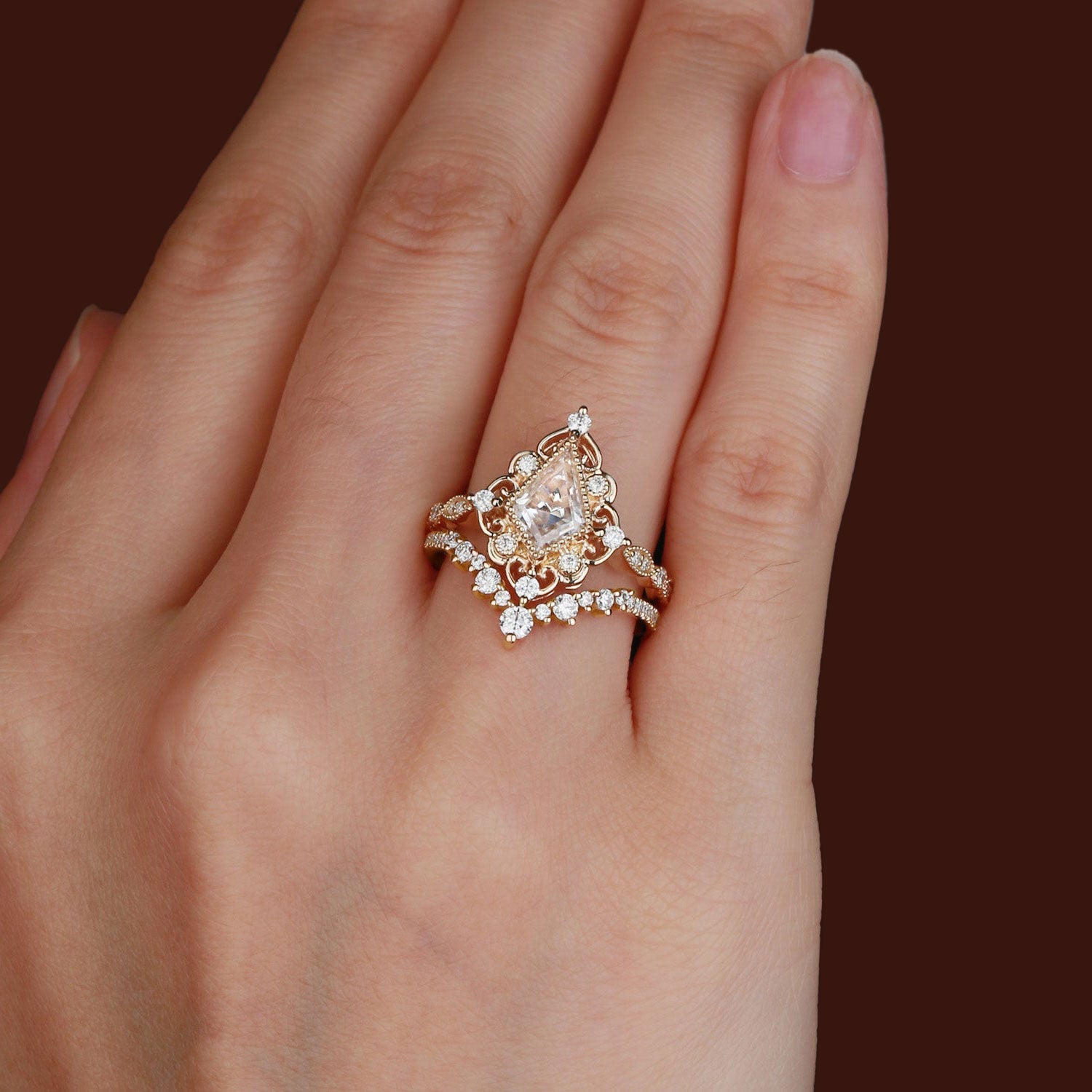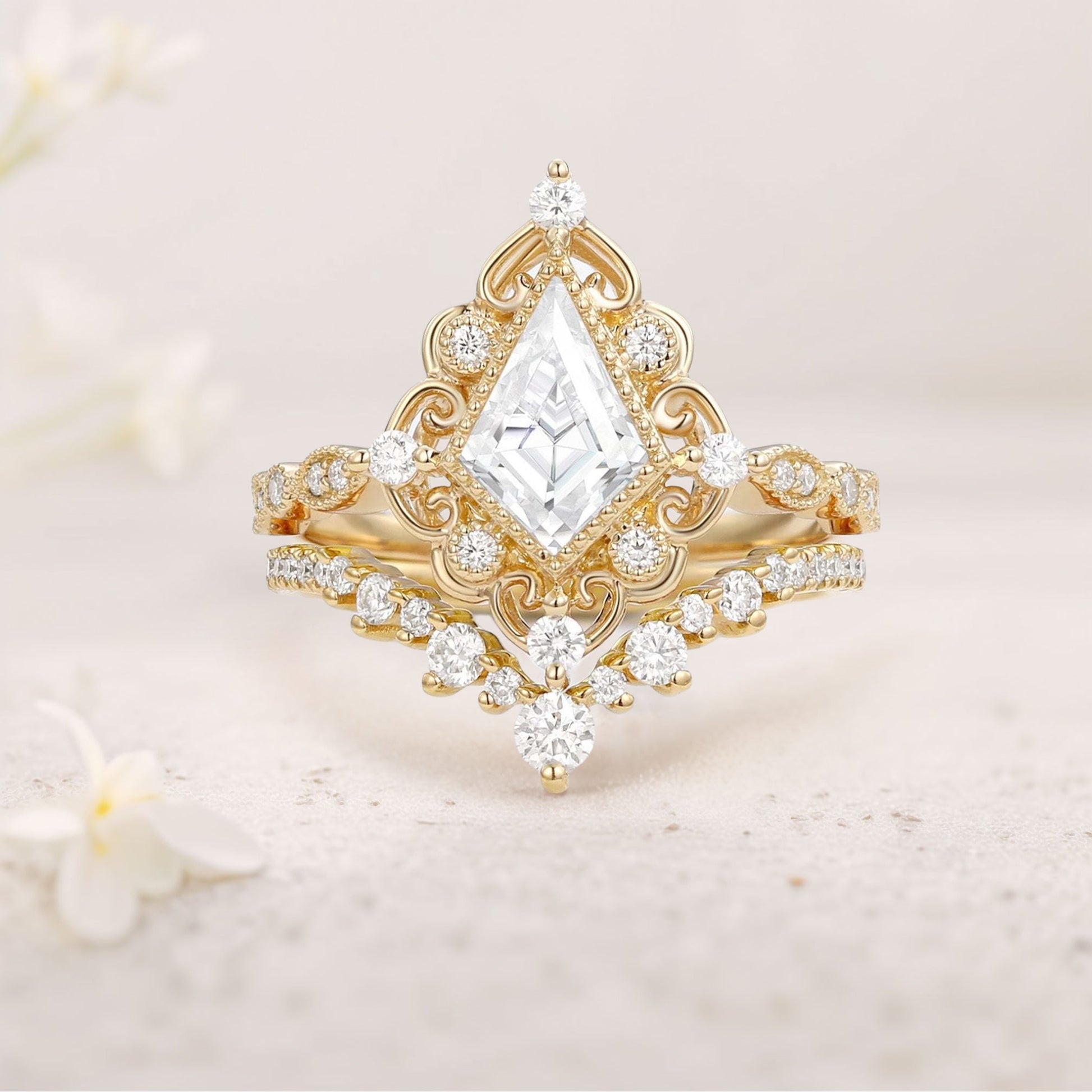 Vintage floral engagement rings Kite Moissanite Art Deco Engagement Ring Set