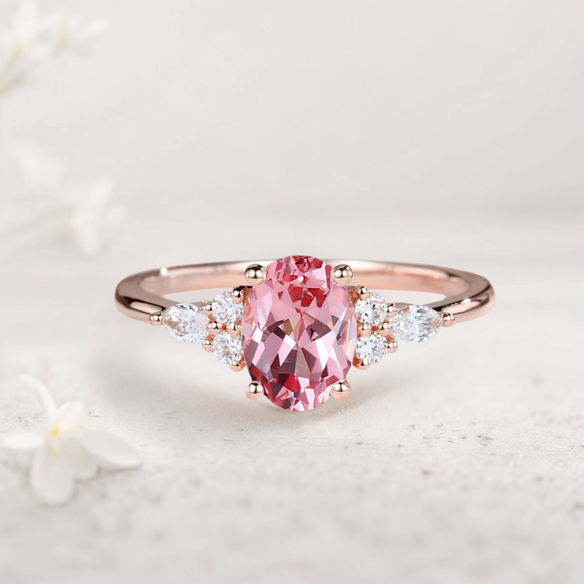 Vintage Oval Padparadscha Cluster Engagement Ring